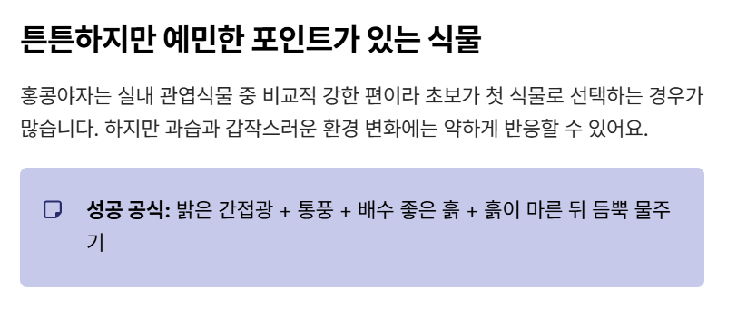 ※ 홍콩야자는 실내 환경(난방/에어컨, 창문 방향, 통풍, 화분 배수)에 따라 반응이 크게 달라집니다. 아래 원칙을 “내 집 조건”에 맞게 미세 조정하면 성공 확률이 급상승합니다.